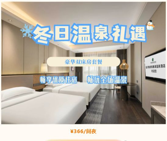含豪华双床房1晚+双东说念主自助早餐与温泉门票。清早在好吃早餐中叫醒活力,日间泡汤赏景,夜晚枕着静谧入眠,大概享受舒心度假时光。