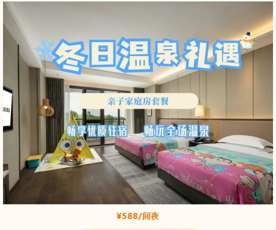 包含亲子家庭房1晚+2大2小自助早餐+两大两小温泉门票。房间温馨童趣,专门配备儿童专属用品,敷裕全家稳固入住。无缺适配亲子家庭需求,全家尽享泡汤与好意思食的双重精辟。