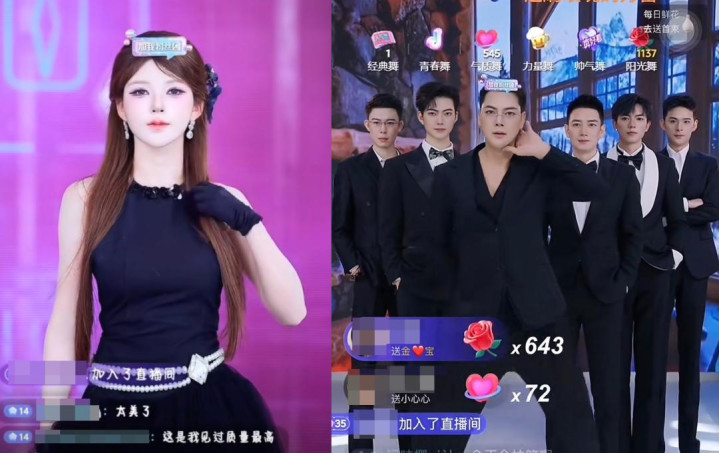 2025年10月起,直播平台上延续出现效法明星的团播直播间。