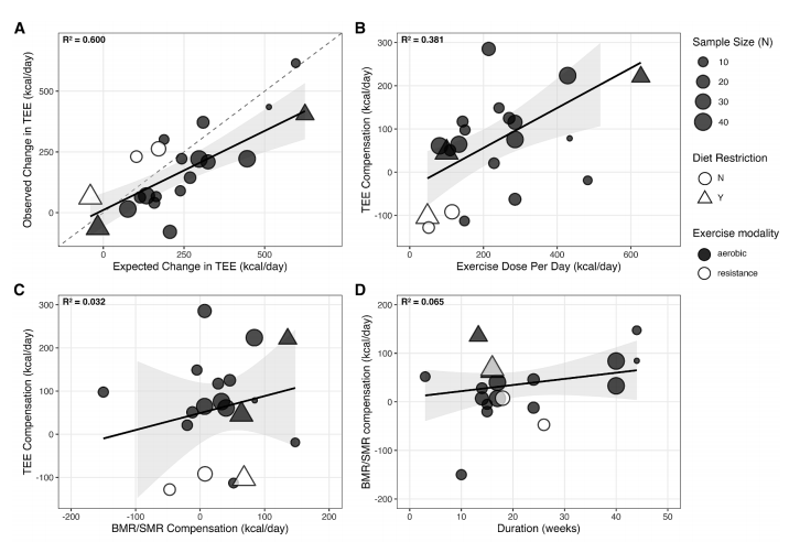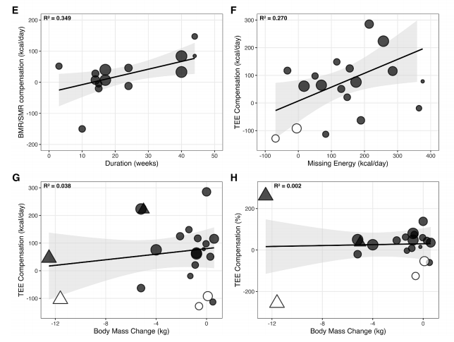 领先,实验效劳清醒:咱们体格有赫然的能量赔偿风景。以有氧通顺烦嚣为例,施行不雅测到的逐日总能量耗尽(TEE)增长,平均仅为累加模子表面预期值的46%傍边(无饮食收尾时)。