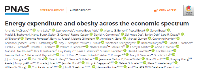 [2]Amanda McGrosky,Amy Luke,Leonore Arab, et al. Energy expenditure and obesity across the economic spectrum, Proceedings of the National Academy of Sciences (2025). DOI:10.1073/pnas.2420902122